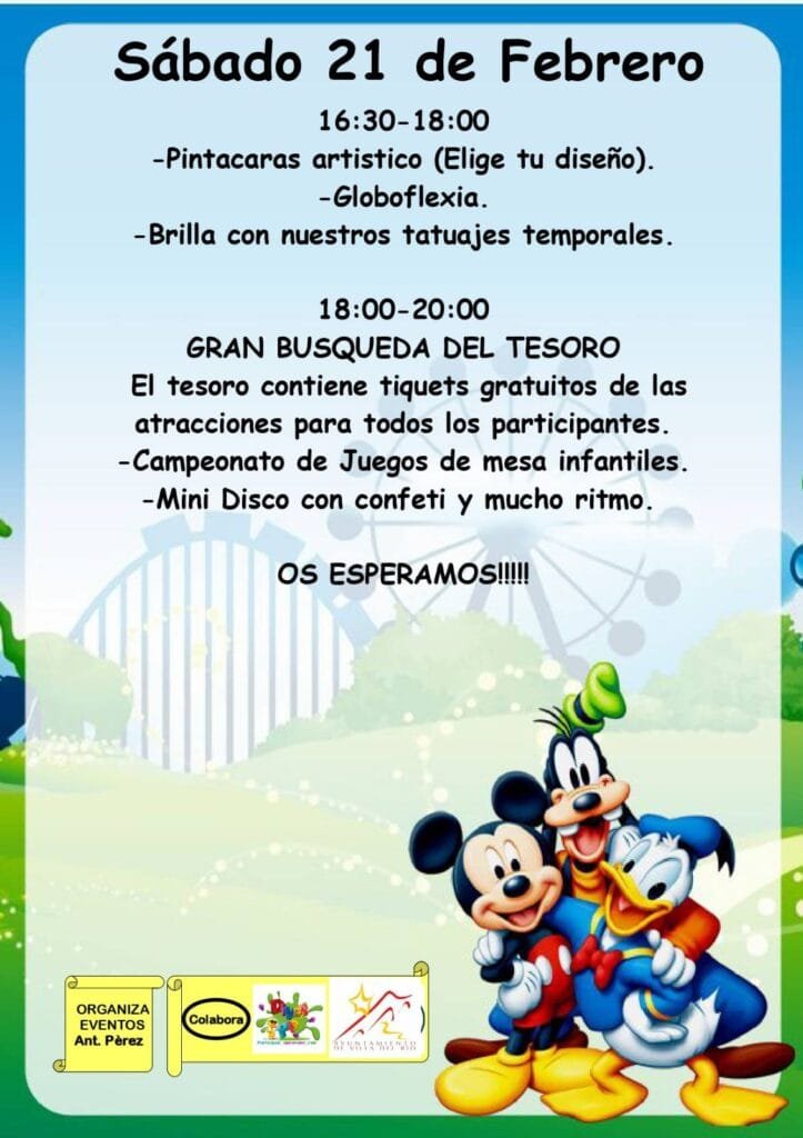 El Ayuntamiento de Villa del Río informa de las actividades culturales, festivas, deportivas y de ocio previstas para el fin de semana del viernes 20 al domingo 22 de febrero, con propuestas para todas las edades dentro de la programación del Carnaval 2026 y la agenda cultural del municipio.