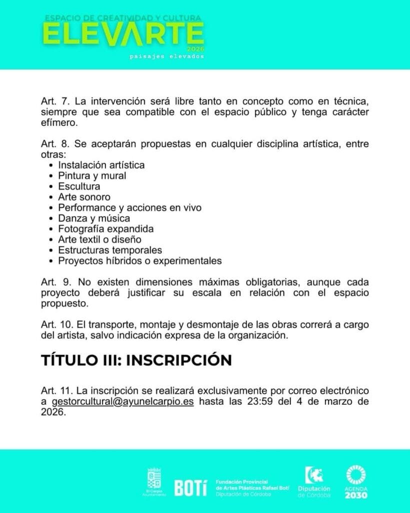 “Intervención artística en el paisaje urbano y natural de El Carpio” dentro de las Jornadas ElevARTE 2026.